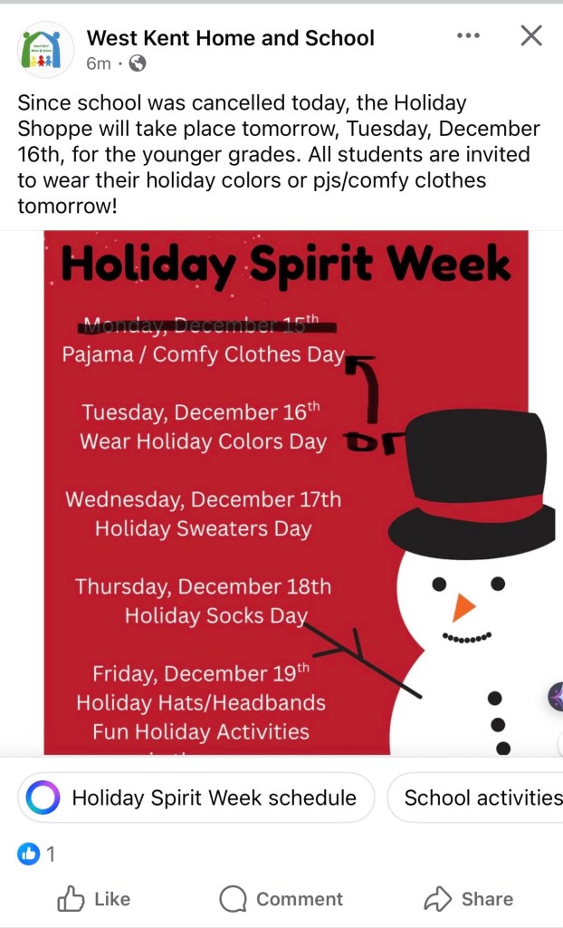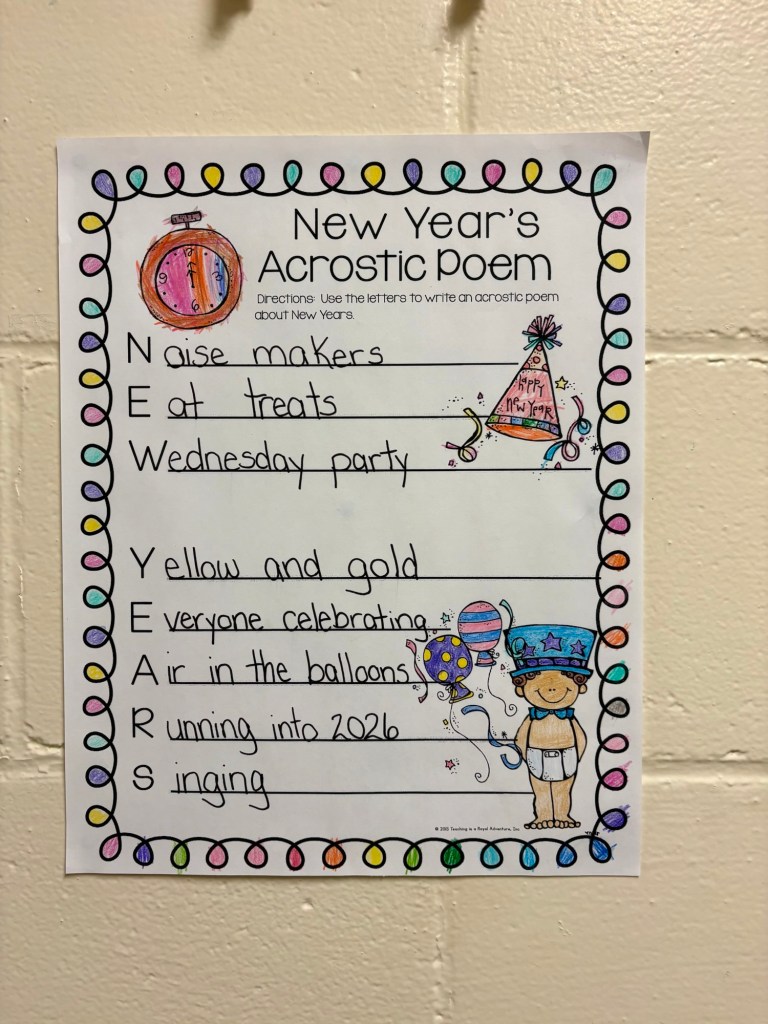We had a bit of an interrupted week here with the snow day on Tuesday and the early dismissal on Monday. I owe you all a debt of gratitude for Monday: that was the easiest/smoothest early dismissal that I have experienced in my career. Everyone followed the plan that was made in September and was right on time. It really makes everything at the school so much less chaotic when that happens. So, thank you!